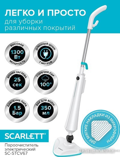 Описание ИИ: **Паровая швабра Scarlett SC-STCV67 – Твоя идеальная чистота, в новом элементе дизайна.** Scarlett SC-STCV67 – это не просто швабра, это способ превратить уборку в удовольствие. Эта стильная и эффективная модель предлагает сочетание превосходной производительности и продуманного дизайна, который станет незаменимым помощником в поддержании чистоты в вашем доме. SC-STCV67 – это швабра с инновационной технологией, которая обеспечивает равномерное нагревание воды, что делает её идеально подходящей для очистки любых поверхностей – от мягкой мебели до плитки. Благодаря этому, вы можете легко удалить загрязнения, не повреждая поверхность. Уникальная конструкция обеспечивает длительное и безопасное использование. Швабра оснащена самоочищающимся резервуаром, который автоматически удаляет всю загрязненную воду, обеспечивая долгий срок службы и чистоту на вид. Это особенно полезно, если вы часто используете швабру. Система очистки с использованием тепловой обработки эффективно удаляет грязь и пятна, оставляя после себя идеально чистую поверхность. Материал корпуса изготовлен из прочного и устойчивого к царапинам пластика. Уплотнители обеспечивают надежное прилегание швабры к поверхности, предотвращая протечки воды. Встроенный датчик температуры позволяет точно настроить время нагрева, обеспечивая оптимальную очистку без перегрева. SC-STCV67 – это идеальный выбор для тех, кто ценит комфорт и элегантный дизайн. Её компактная форма позволяет легко хранить и транспортировать, а мощная насадка с широким зубчатым контуром обеспечивает эффективное удаление грязи и пыли. Подумайте о том, чтобы насладиться уверенностью в том, что ваша швабра всегда будет работать быстро и эффективно. Мы предлагаем отличные условия для покупки, включая выгодные купоны! Закажите Scarlett SC-STCV67 прямо сейчас в нашем магазине Rulez! Не упустите возможность приобрести качественную и стильную швабру по привлекательной цене! Узнайте о специальных предложениях и промо-кодах на нашем сайте. Для тех, кто ищет возможность приобрести швабру в Беларуси – посетите наш каталог. Мы гарантируем выгодные цены и возможность получения купона. Приобретите Scarlett SC-STCV67 в магазине Rulez – и вы почувствуете разницу! Закажите сейчас, чтобы гарантировать себе отличную скидку и доставку по Беларуси. Приглашаем вас в мир стильной и удобной уборки с Scarlett SC-STCV67! Ищете подходящий купон? Посетите наш сайт, чтобы получить бесплатную доставку по Беларуси!