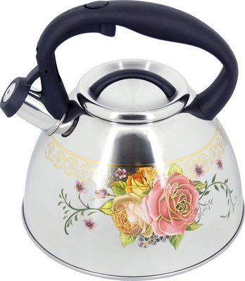 Замечания: Яркий и вместительный чайник выполнен из качественной нержавеющей стали, по специальной пресс-форме. Данная модель имеет толщину стенок 0,4 мм и утолщенное дно, благодаря чему изделие не деформируется и позволяет равномерно распределять тепло. Оригинальная ручка чайника выполнена из нейлона и не нагревается, на ней расположен удобный механизм открывания носика. Плотное прилегание носика чайника защищает от разбрызгивания горячей воды во время закипания. Благодаря громкому свистку чайник вовремя проинформирует вас о том, что его необходимо убрать с плиты. Чайник подходит для всех типов плит. Внешний вид изделия не портится и не деформируется в течение долгого периода эксплуатации.